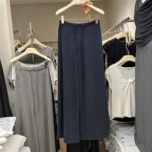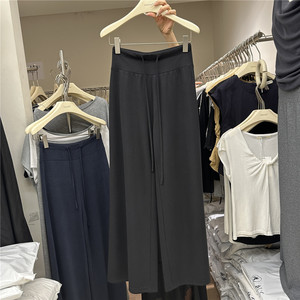 韩国东大门秋季新款韩系高腰显瘦抽绳垂坠宽松百搭阔腿拖地长裤女