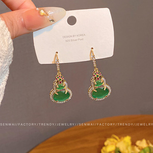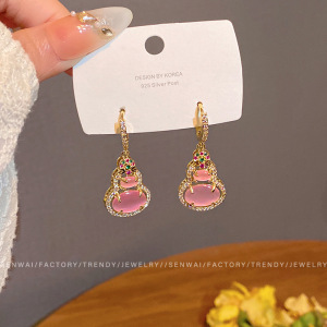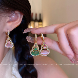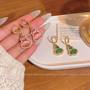 新中式国风葫芦耳钉女轻奢高级感微镶锆石猫眼石耳环气质耳饰批发
