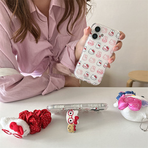 白底红线戴眼镜kt猫兔子 壳+发圈绳+小熊kt猫折叠支架
