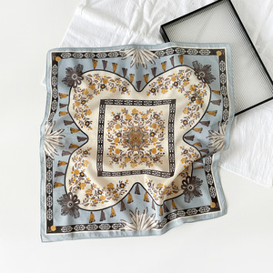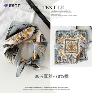 春秋季花朵丝巾53小方巾旅游出行棉真丝头巾实用高级感围脖送妈妈