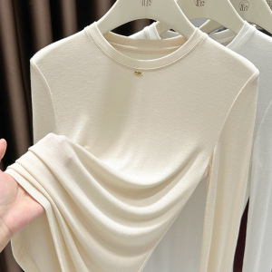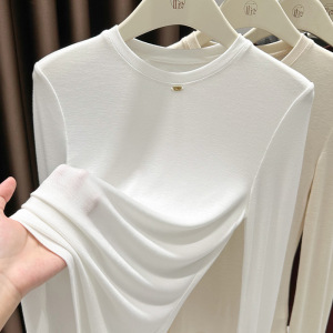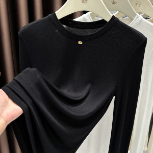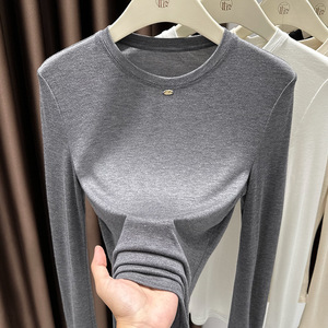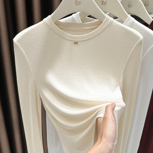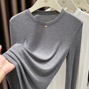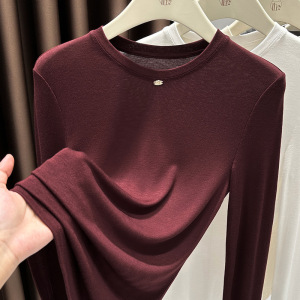 今年流行漂亮安可拉红打底衫女长袖t恤内搭气质酒红色圆领小衫秋