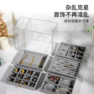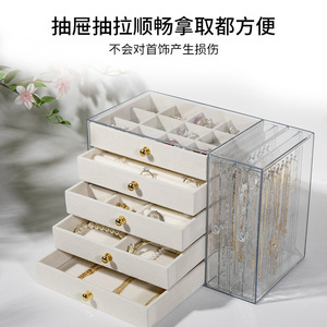 多层首饰收纳盒抽屉式大容量防氧化耳环戒指项链手镯珠宝饰品盒子