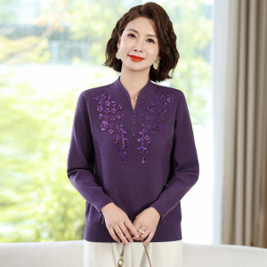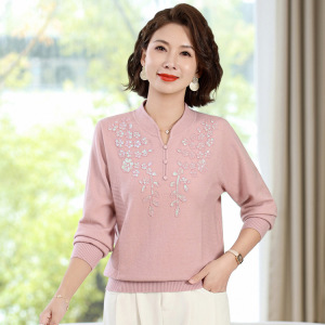 中老年女本命年气质上衣妈妈秋装新款套头红色毛衣洋气打底衫