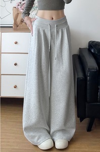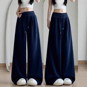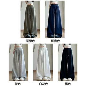 黑色运动裤女秋2025新款小个子慵懒宽松显瘦阔腿裤垂感直筒拖地裤
