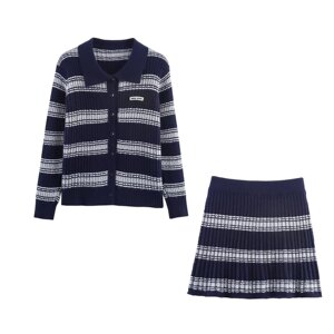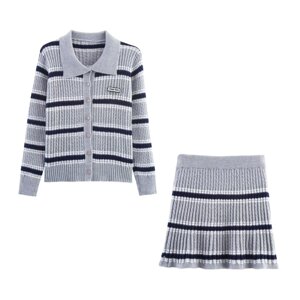 PB&ZA女装2025年秋季新款 学院风条纹针织开衫上衣短款半身裙套装