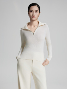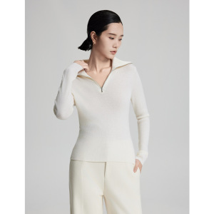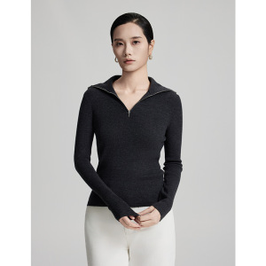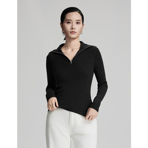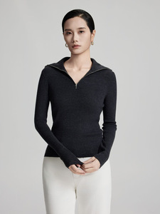 扬子纱美丽诺羊毛半开拉链翻领毛衣女2024新款秋冬修身长袖针织衫