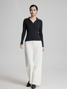 德国扬子纱翻领羊毛衫半开襟拉链坑条长袖毛衣百搭修身长袖针织衫