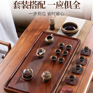 实木茶盘家用整块长方形简约功夫茶具套装排水中式新款客厅泡茶台