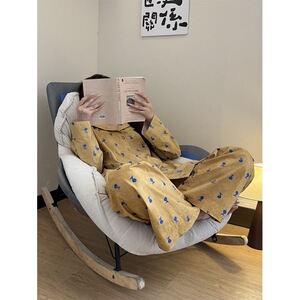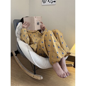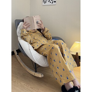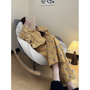韩系少女简约风撞色印花长袖睡衣女款春秋休闲宽松长裤套装家居服