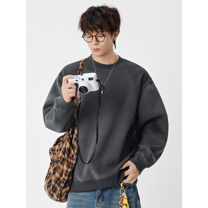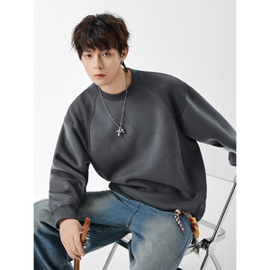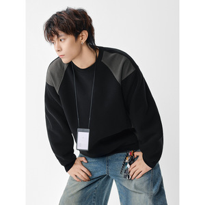 FLYCLAN美式复古校园风插肩袖拼色运动上衣男生套头圆领卫衣Q8920