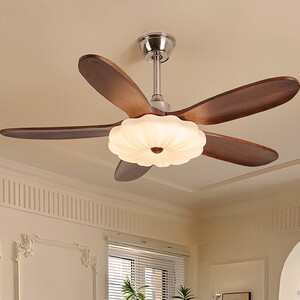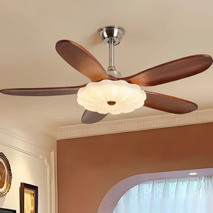 中古风吊扇灯复古美式餐厅风扇灯五叶大风力卧室书房客厅风扇吊灯