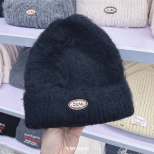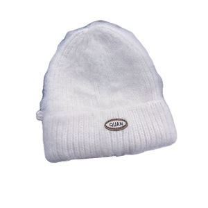 批发韩国2025年新款纯色复古字母翻边毛绒针织帽百搭显脸小毛线帽