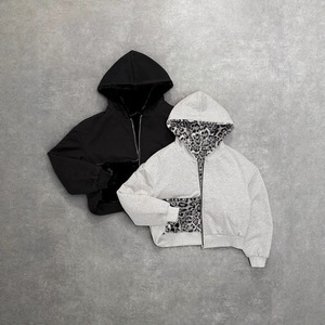 2025欧美新款秋冬连帽卫衣两面图案复古豹纹拉链帽衫没字母上衣