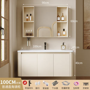 100CM奶油色陶瓷一体盆+智能全封镜柜