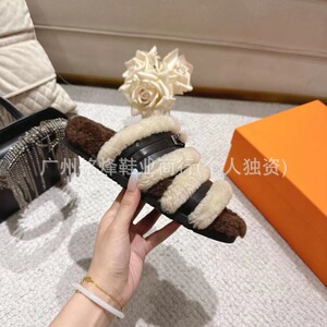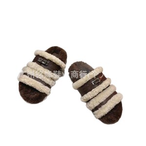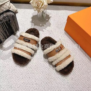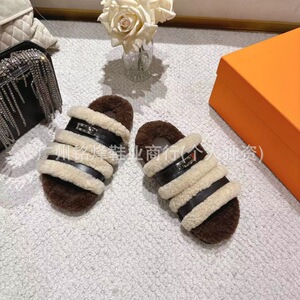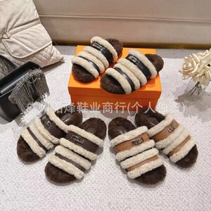 厚底一字拖鞋外穿女2025秋季冬季新款羊毛真毛真皮露趾百搭毛毛鞋