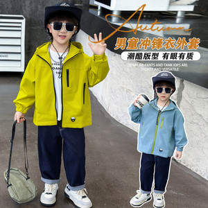 男童秋季三拉链冲锋衣外套春秋装儿童帅气潮款上衣中小童痞帅衣服