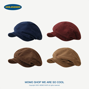日系翻檐纯色麂皮绒报童帽英伦风复古不规则画家帽子贝雷帽男女生