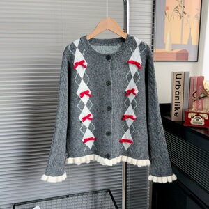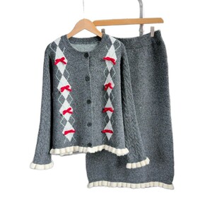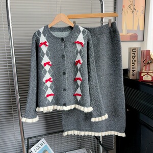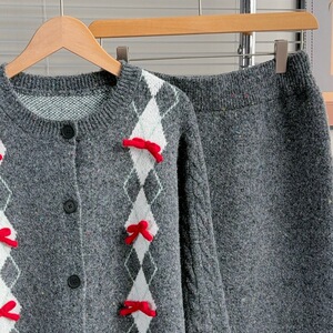 设计感蝴蝶结毛衣开衫女套装秋冬新款韩系慵懒风针织半身裙两件套