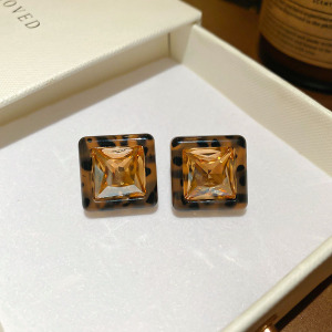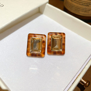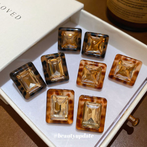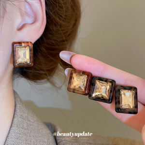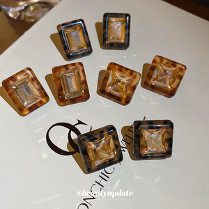 银针复古镶钻树脂方形正方形耳钉美拉德风耳环耳坠小众设计感耳饰