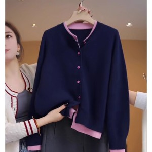 2025秋冬撞色假两件针织衫女设计感毛绒小衫时尚高端毛衣开衫外套