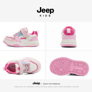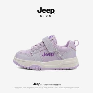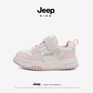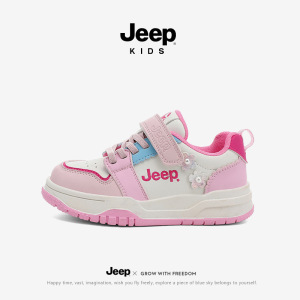 Jeep儿童板鞋女童鞋子秋季2025新款皮面防水小白鞋女孩休闲运动鞋