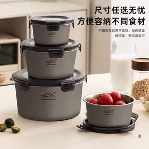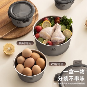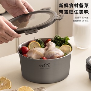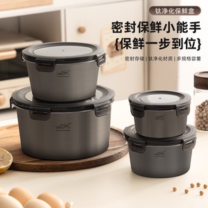 钛净化圆形保鲜盒户外野营便携水果便当盒健康抑菌保温碗带盖饭盒