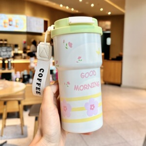 水杯女生保温杯高颜值316不锈钢陶瓷覆层带吸管杯子咖啡杯子新款