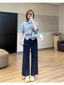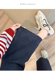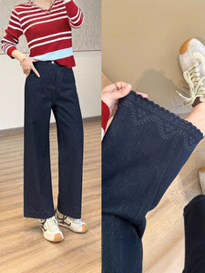 靓小靓 小波浪刺绣【笔杆裤】高级原浆蓝无弹窄直筒裤 锁色牛仔裤