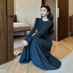 秋冬穿搭一整套气质高级感御姐轻熟修身长袖针织上衣半身裙套装女
