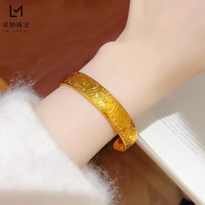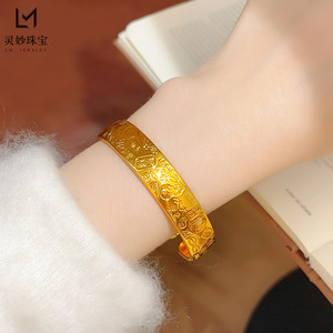 金店同款沙金亮面吉言招财猫开口手镯宽面平安喜乐镯子精致送女友