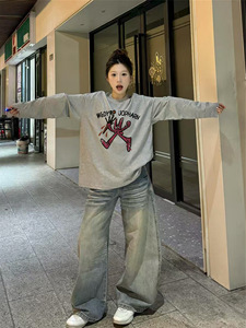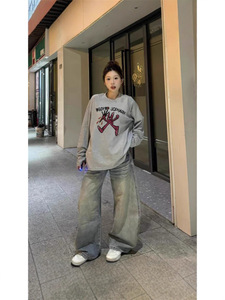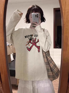 2025新款纯棉长袖t恤女秋冬季灰色内搭设计感小众宽松上衣打底衫