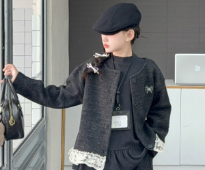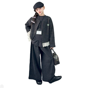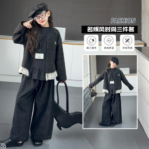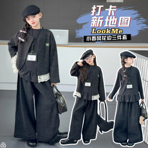 女童2025新款中大童春秋洋气时髦韩系名媛风花边外套波点裤三件套