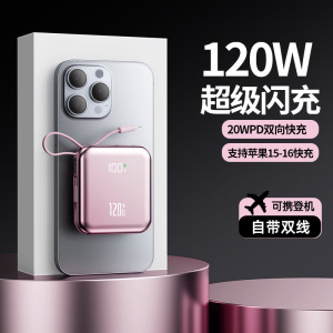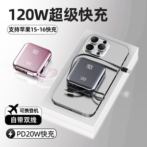 超级快充120W自带线20000毫安大容量充电宝小巧迷你移动电源礼品
