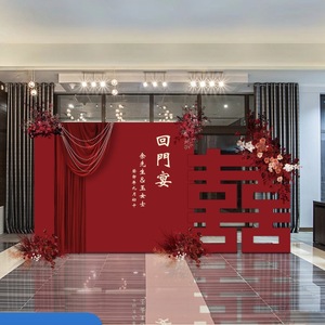 回门宴布置装饰背景墙中式婚礼出阁结婚答谢场景婚庆全套订婚kt板