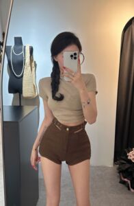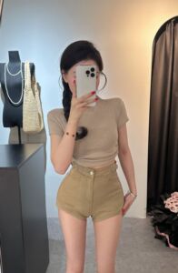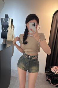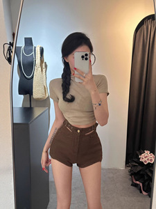 抖音质量夏季新款复古牛仔短裤女双扣设计感高腰显瘦百搭热裤7017