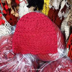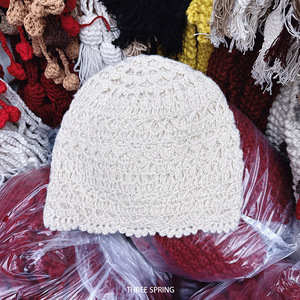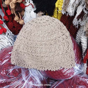 批发韩国2025年新款手工镂空钩花羊毛针织帽女百搭小众设计包头帽