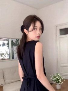 赫本风黑色无袖背心连衣裙子女夏季2025新款茶歇法式气质宽松长裙
