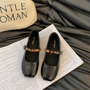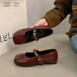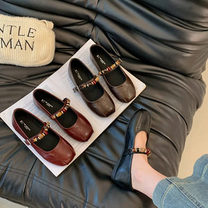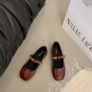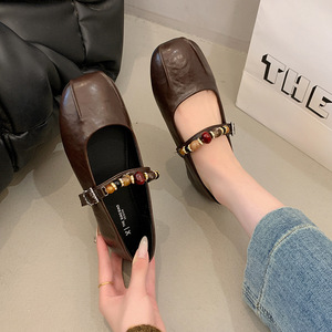 2025新款复古方头单鞋女秋季浅口女鞋休闲时尚一脚蹬平底乐福鞋子