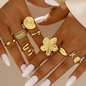欧美ins套装关节戒 复古光面素圈时尚指环 波西米亚海星个性戒指