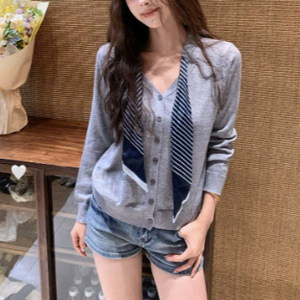 韩系优雅绝美纯色飘带领长袖针织开衫女秋季款高级感洋气外套上衣
