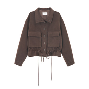 [共线]COLNE秋季新款设计感立领抽绳肌理短夹克绵羊毛外套女C5414
