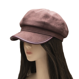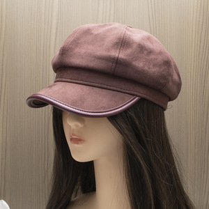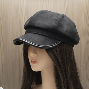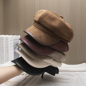 秋冬细边皮檐八角贝雷帽女复古英伦显脸小韩版休闲百搭鸭舌画家帽
