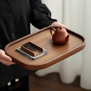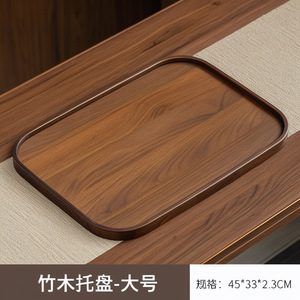 中式简约长方形收纳茶水盘子家商用餐厅精致干泡台竹制提手茶托盘