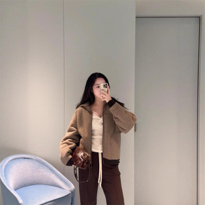 2025秋季新款南油miu复古温柔甜酷感拼接拉链字母翻领长袖外套女