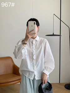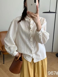 初秋长袖衬衣女25年新款气质文艺清新翻领重工刺绣钩花衬衫ZLG15