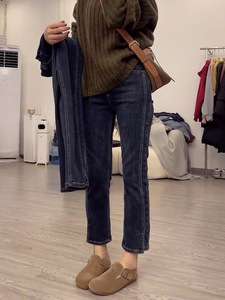 S-5XL大码微喇叭牛仔裤女2024冬梨形身材宽松高腰显瘦直筒阔腿裤