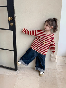 童森童马女童长袖T恤秋装2025新款儿童秋季条纹上衣春秋款打底衫