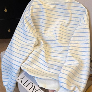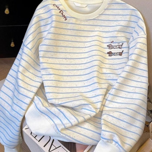 洋气复古条纹小狗刺绣圆领卫衣女薄款秋季2025今年新款宽松上衣潮