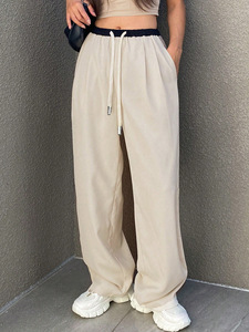 跨境高腰垂坠感宽松阔腿卫裤 小个子秋季美式直筒休闲女运动裤