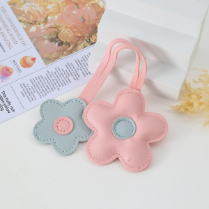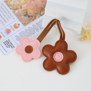 现货花朵饰品配件卡通PU皮质挂件皮革挂绳撞色郁金香花朵钥匙扣